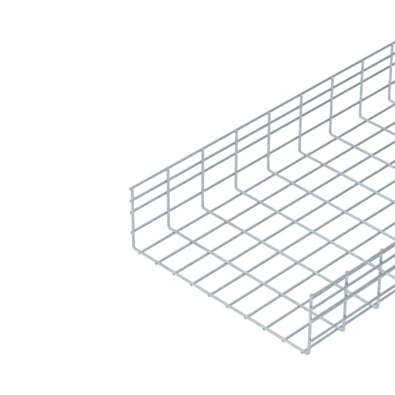 Mesh cable tray made of spot-welded steel wire of side height 155 mm.