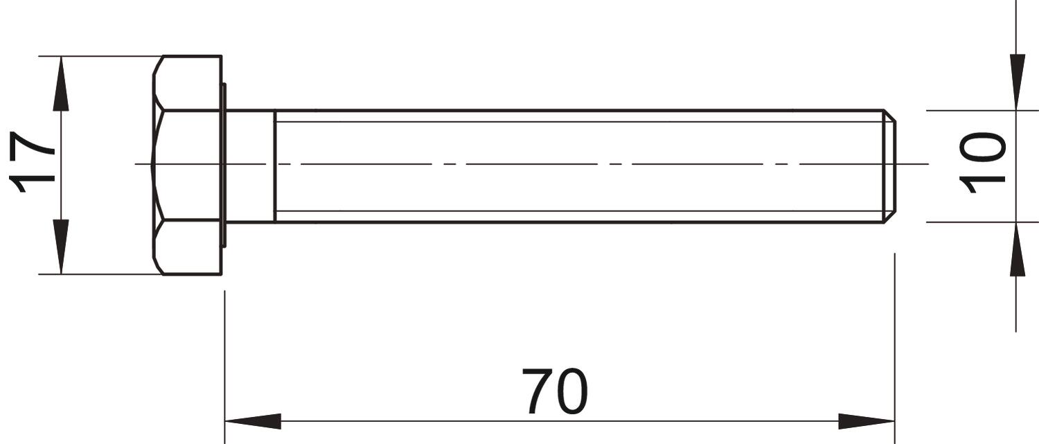Hexagonal bolt according to DIN 933 with metric thread. Resistance grade at least 8.8.