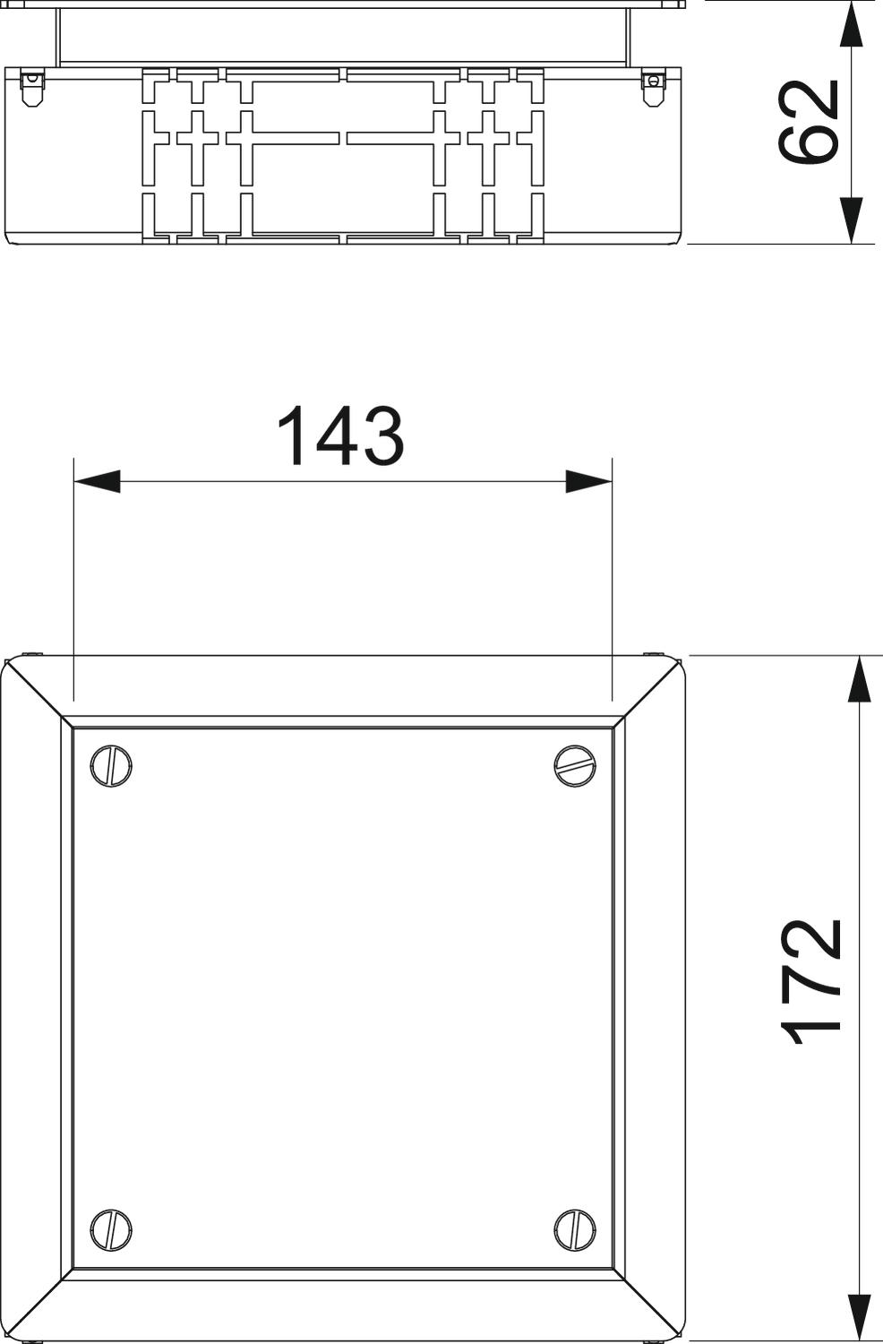 Underfloor junction box for metal ducts in the heights 25 mm and 38 mm.
