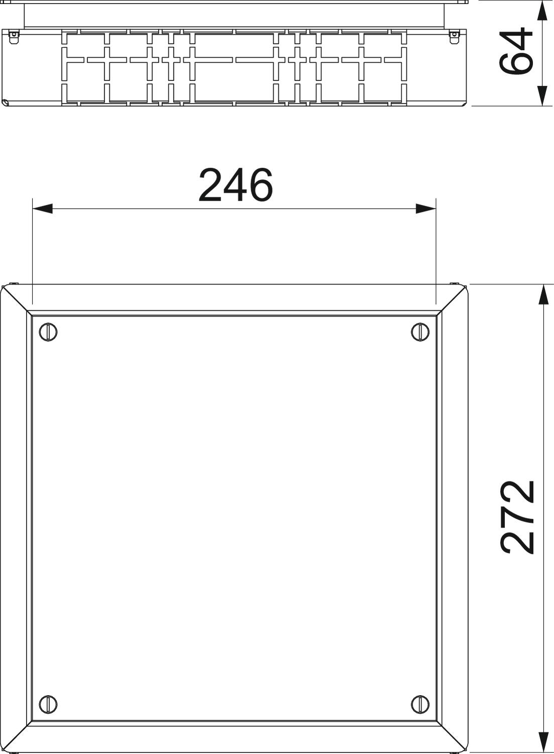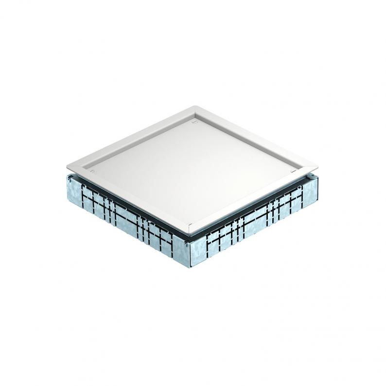 Underfloor junction box for metal ducts in the heights 25 mm and 38 mm.