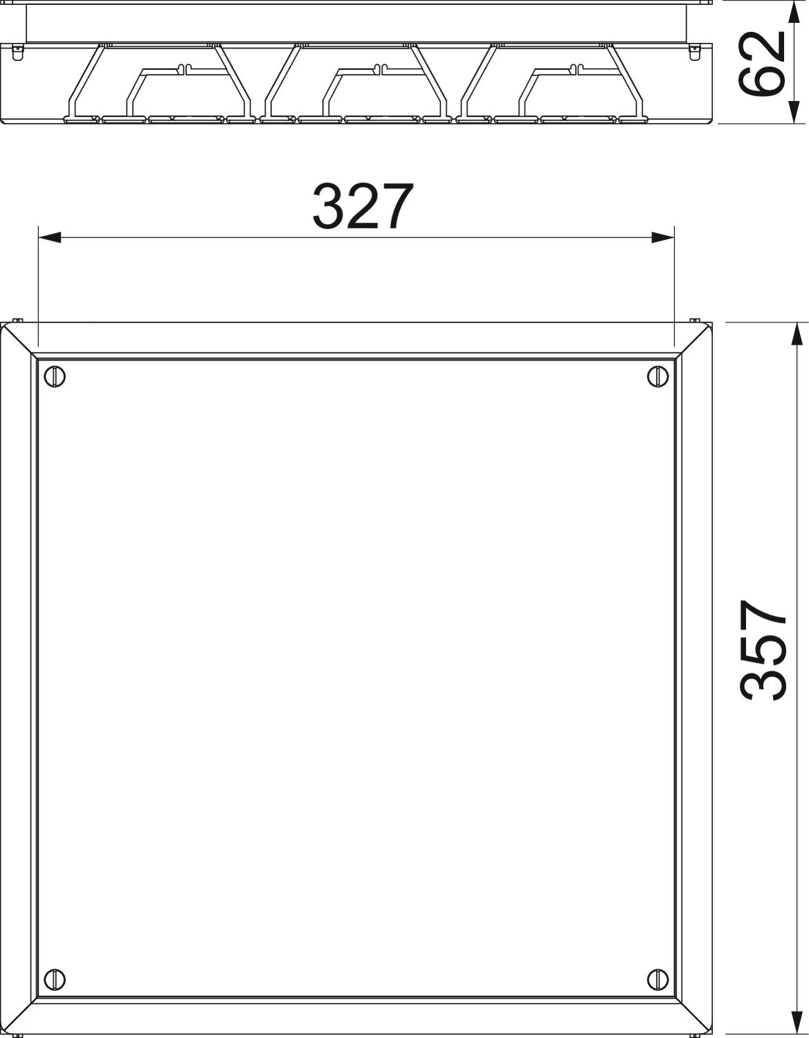 Underfloor junction box for PVC ducts in heights of 25 mm and 35 mm.