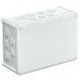 Junction box for the connection of cables and lines indoors and in protected outdoor areas. Rectangular design with plug-in seals to the sides and knock-out entries in the bottom. Suitable for wall and ceiling mounting and on mounting panels. With the option to fasten inside and to mount via the corner domes. Cover with quick lock, sealable. Made from halogen-free and UV-resistant materials.