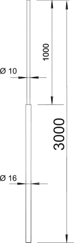 • Last metre is tapered from Ø 16 mm to Ø 10 mm, material: AlMgSi