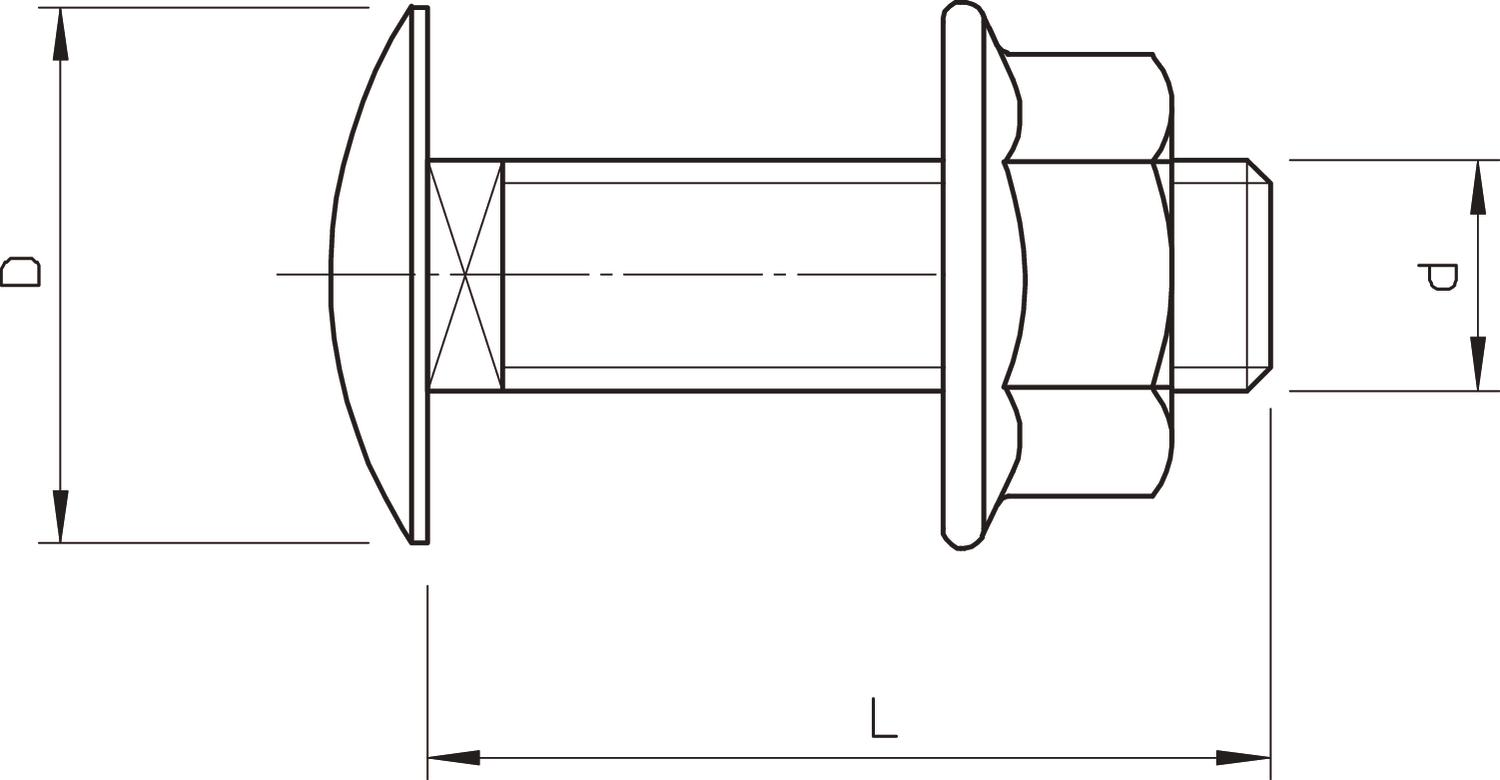 Hot galvanised truss-head bolt with square neck including electrogalvanised combination nut.